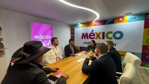Uno de los grandes ejes de la participación en FITUR 2026 fue la dimensión internacional del proyecto, con especial protagonismo de la relación entre Pueblos Mágicos de España y Pueblos Mágicos de México. Durante la feria se mantuvieron reuniones de alto nivel con el Estado Federal de México, encabezadas por Marte Luís Molina Orozco, Director General de Gestión Social de Destinos y máxima autoridad del programa estatal Pueblos Mágicos de México.
